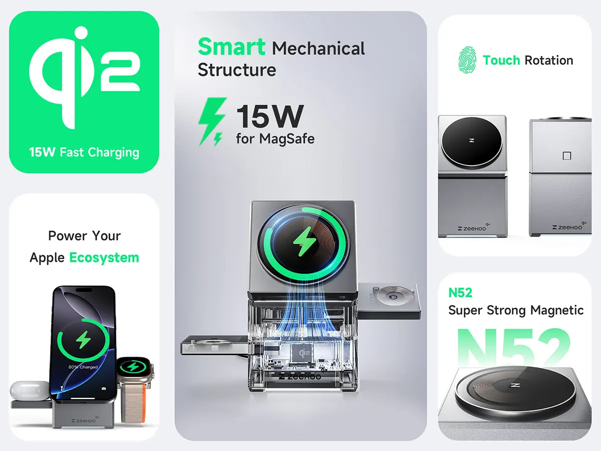 Experience ultra-fast wireless charging up to 15W with the latest Qi2 Protocol, delivering iPhone-compatible speeds while ensuring safety and efficiency. Say goodbye to tangled cables and hello to rapid, stable power for your devices.